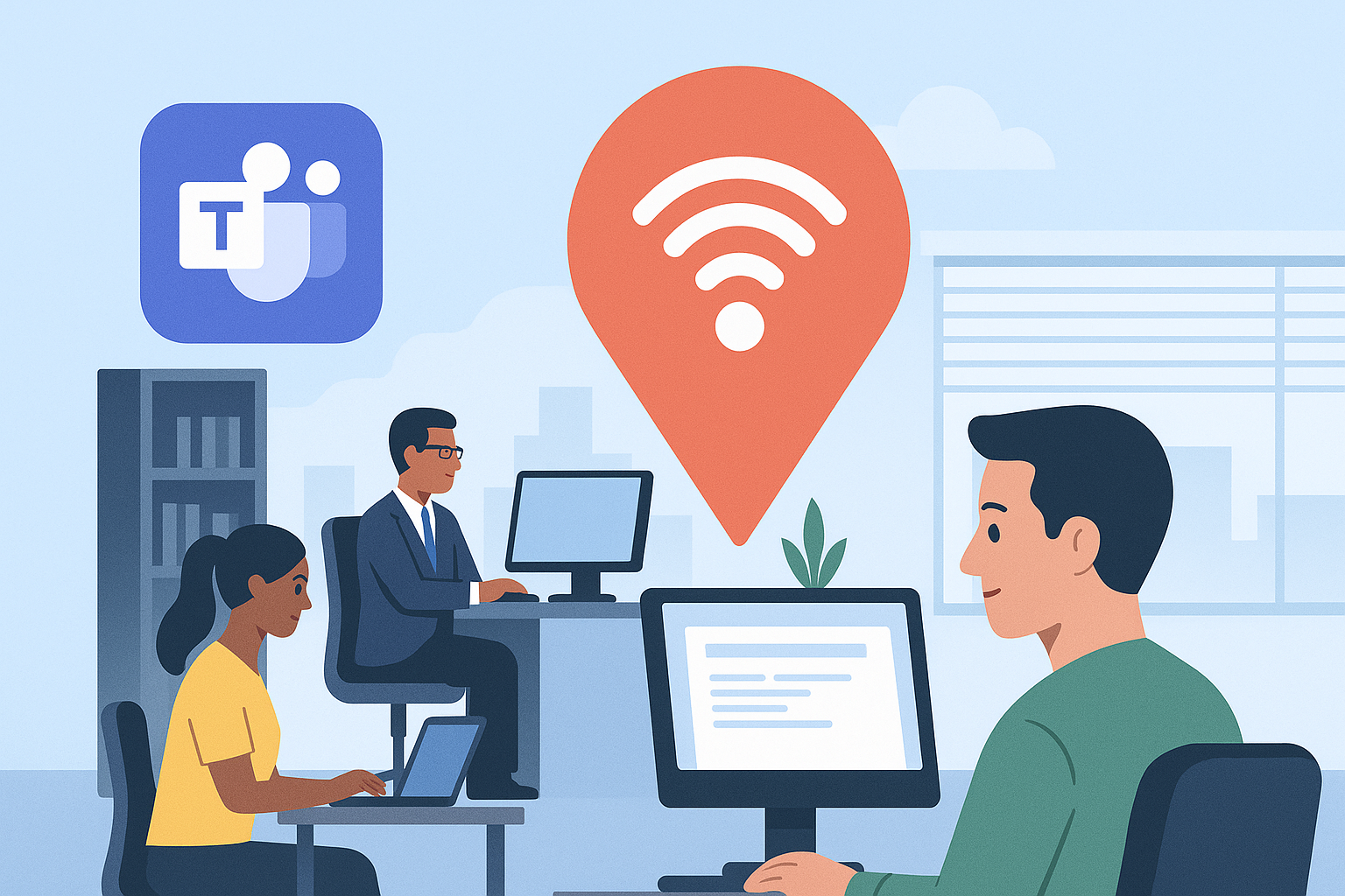 Met de nieuwe update kan Teams automatisch de locatie van gebruikers vaststellen. Door het IP-adres en het MAC-adres van de bedrijfsrouter te analyseren, kan Teams automatisch herkennen of iemand op kantoor is.[1] Zodra een gebruiker verbinding maakt met het wifinetwerk op kantoor, wordt diens aanwezigheid zichtbaar voor de werkgever. Wanneer de gebruiker het kantoor verlaat en de wifiverbinding verbreekt, past Teams de locatie-indicatie automatisch aan.
